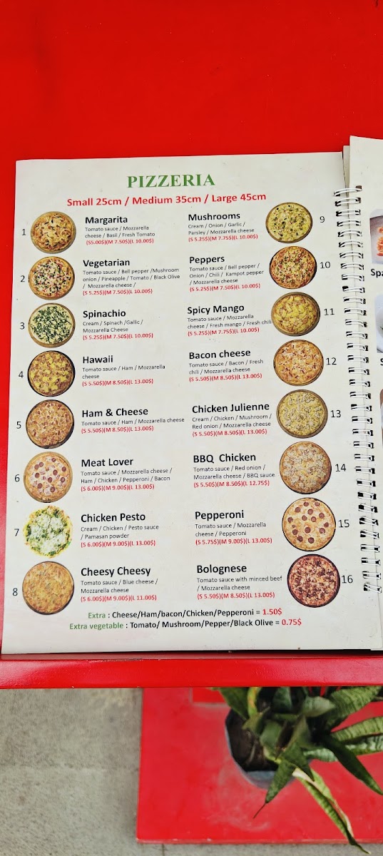 Welcome to Flying Zebra, an exciting gem nestled on Sivutha Street in Mondul 1 Village, Cambodia. This eatery boasts a delightful menu filled with crowd-pleasers. The standout is undoubtedly their generously-sized pizzas, as highlighted by satisfied customers. For instance, the meat lovers' large pizza is a favorite, offering rich flavors without overwhelming your appetite.